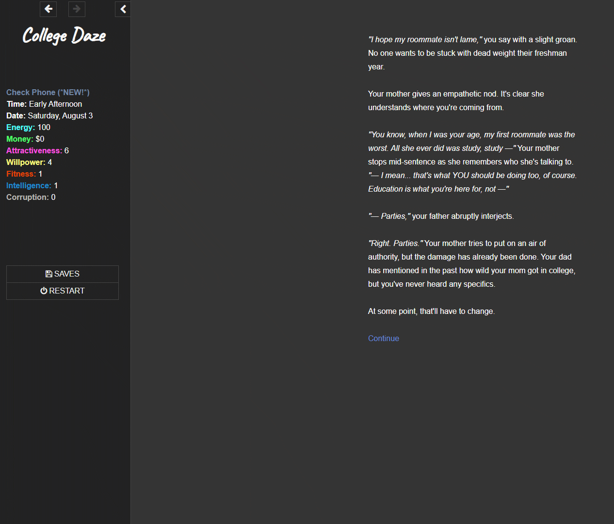 Hello, I'm currently working on College Daze, an adult choose-your-own-adventure game. New subscriber releases come out on a weekly basis..