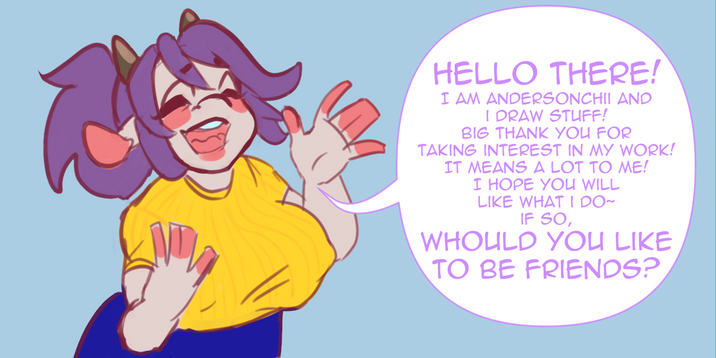 I draw a lot of furry stuff. Also orcs and goblins. And anime girls.I'm trying to make short animations too O: