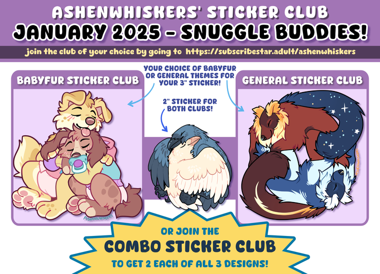 Transmasc AAPI artist making furry art! 2 sticker clubs - general furry or babyfur stickers mailed to you every month!