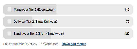For the order we technically have the Escortwear in the lead, but when I discussed it with Deniis, the Banditwear was ahead soooo, Banditwear Tier 2 has currently been commissioned for the H-CGs and then we will do Escortwear and finally Dollwear. Will have to see how long all this takes, Deniis has vowed to improve his delivery speed and finish the first batch within the next 1-2 weeks.