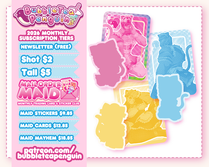 I create monthly sexy maid pinups based on various characters suggested and have a "Mail Order Maid" (mail club) where I send exclusive art and stickers each month My work is intended for adults, please proceed with caution.