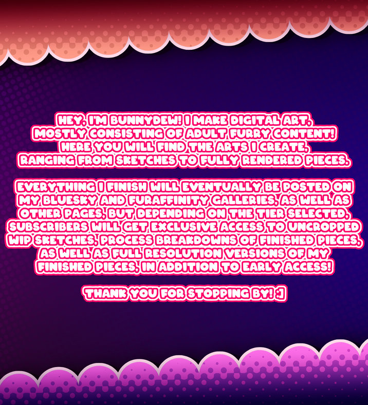 I'm creating adult digital furry art! Mix of SFW and NSFW material, but mostly NSFW :]