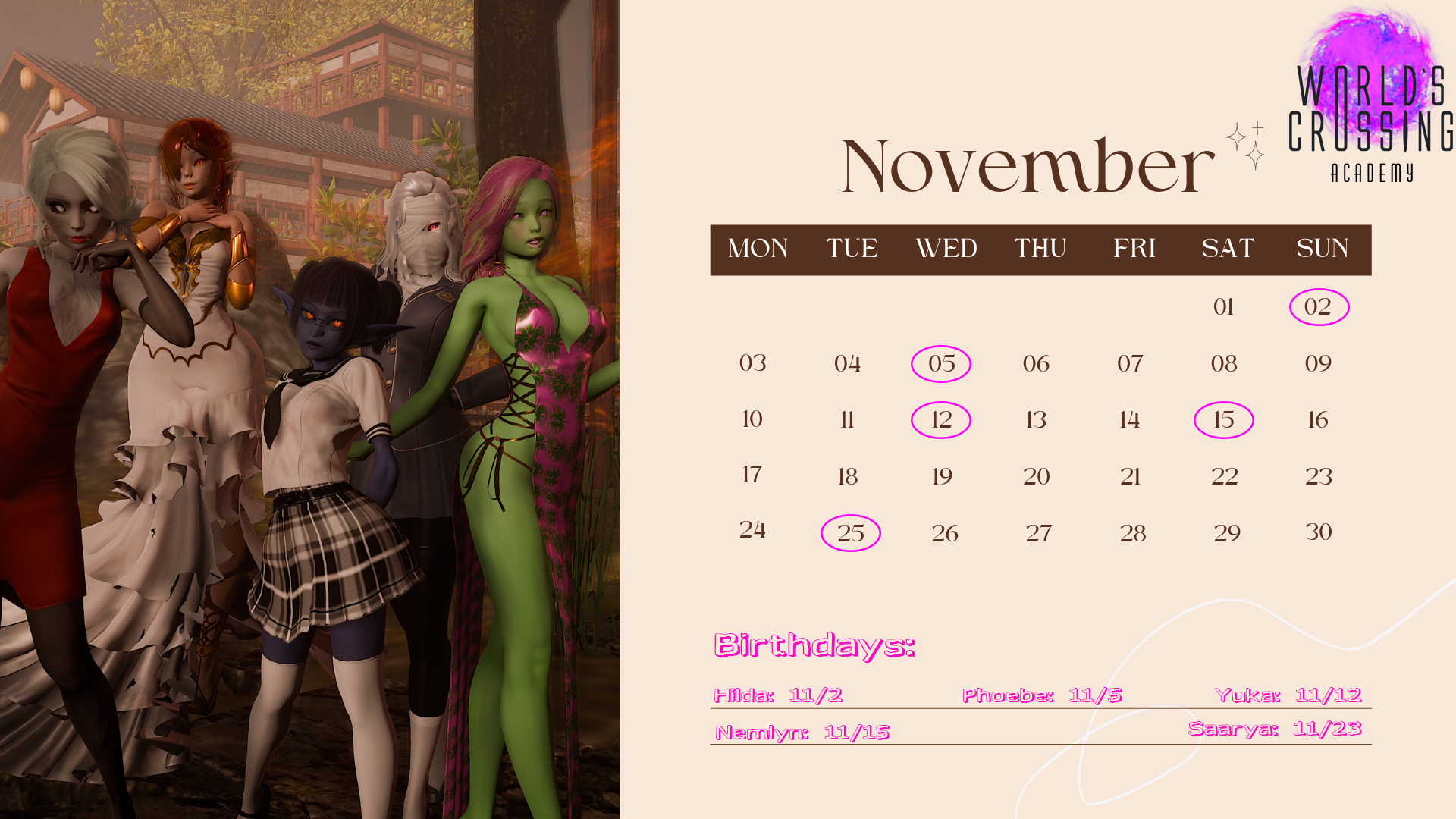 Hey, all! I made sure to get the calendar out on TIME this time lol