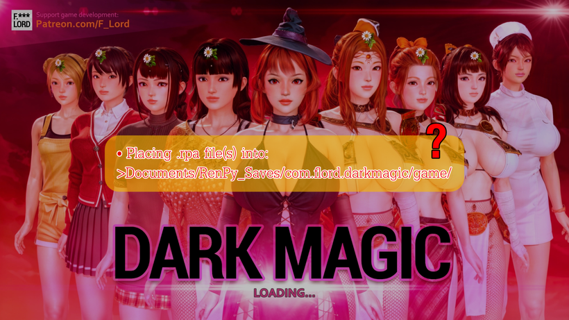 Step 4: Locate the Game Content zip file (.zip) from Android download 2.). Extract the zip file to the required directory >> Documents/RenPy_Saves/com.flord.darkmagic/game/ Alternatively, you can choose any method you prefer to move the contents of this zip file (archive.rpa, and scripts.rpa) to the game directory. Step 5: Once completed, open the Launcher App and enjoy.