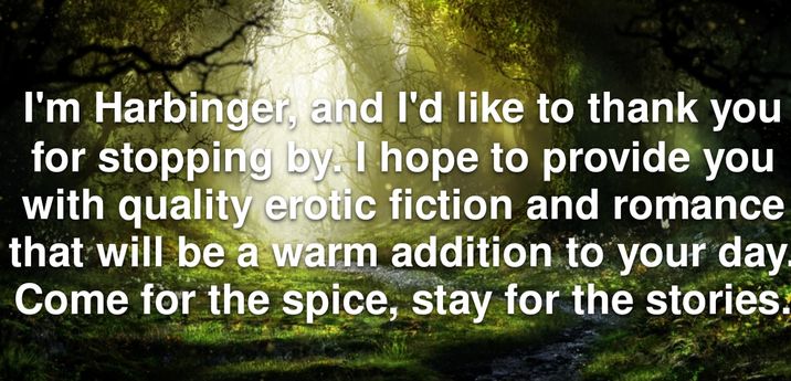 Hey, it's Harbinger! I'm just a romance and erotic fiction author trying to make an easier living out of a passion. Stop in and stay for a good read!