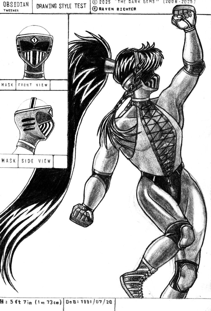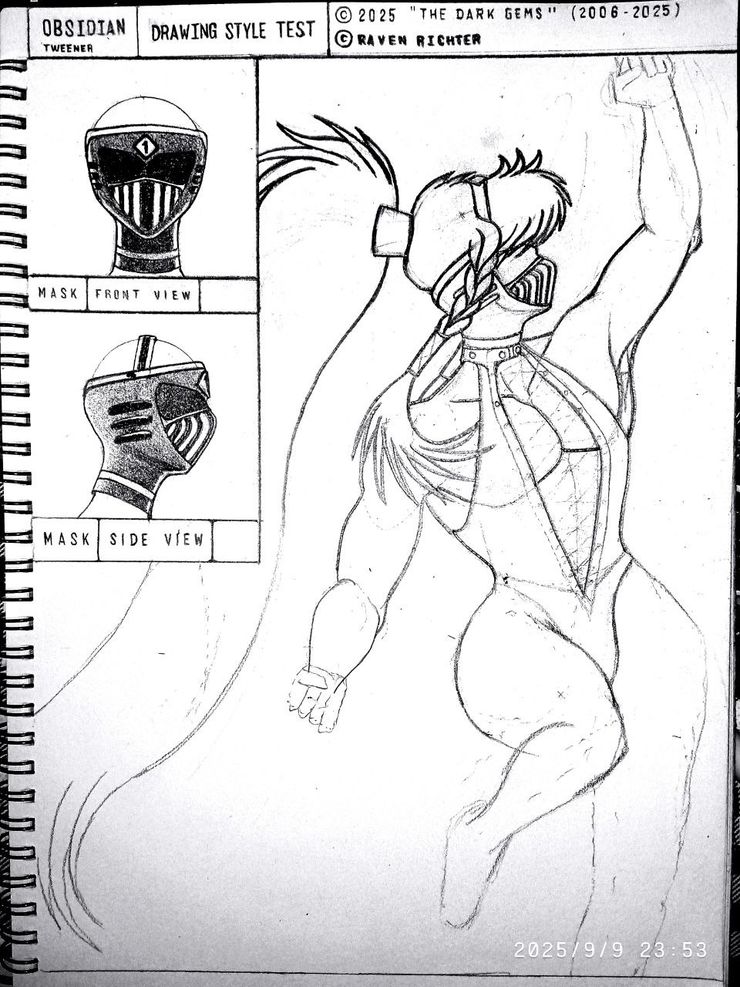 Drawing style test: Obsidian the Tweener (W.I.P.'s, 2025)