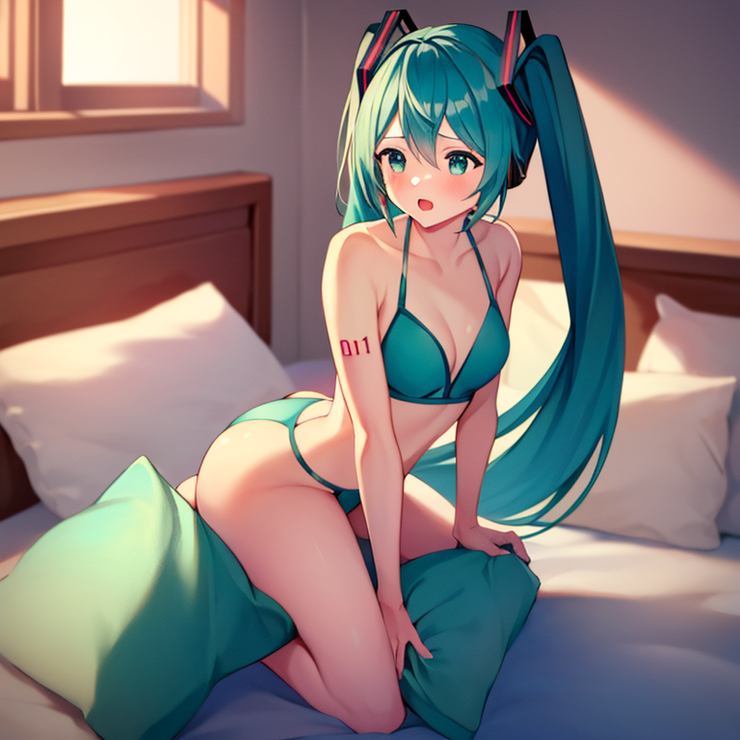 Hatsune Miku got caught grinding the pillow.