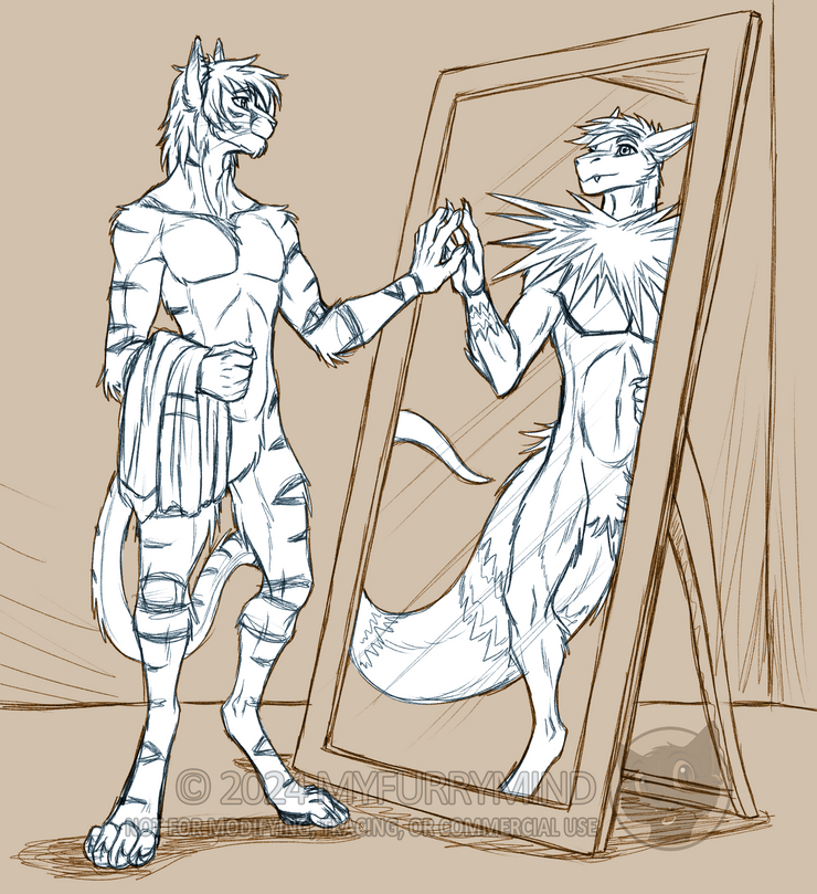 The winner for March's Free Doodle Raffle was MC_Wildcat and he won a 2 Character Full Body Doodle! The feline, Wildcat, is about to get ready into his uniform and notices his reflection as Burning Furspark, which I believe is his alter ego (Correct me if I'm wrong, Wildcat, hehe!). Hope you guys like it!