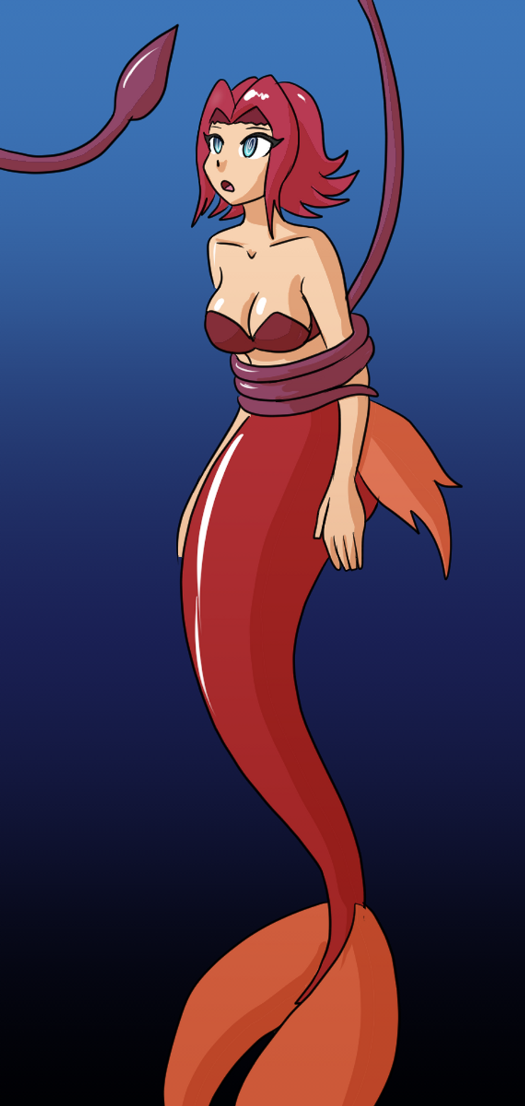 - and finally, Kallen from Code Geass as a mermaid being hypnotized while wrapped by a tentacle