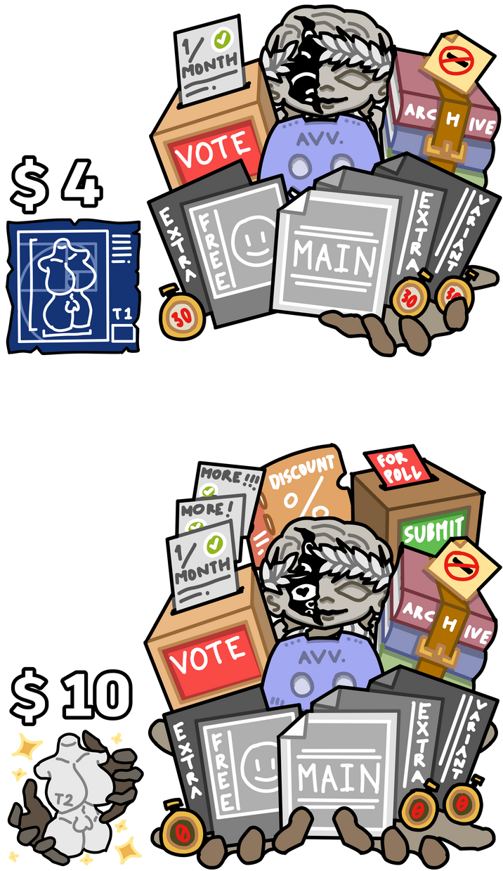 • access to a private discord server to communicate, vote, and access my contents with ease.