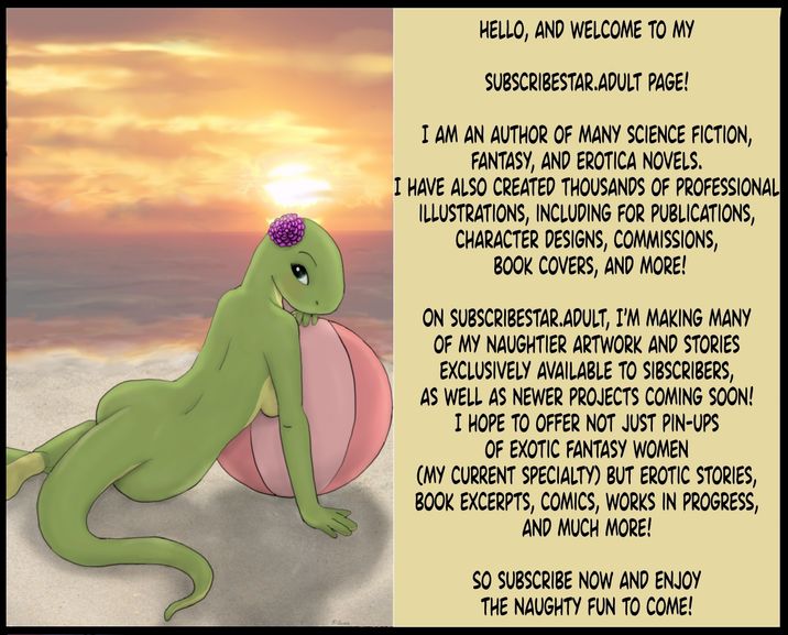 Writer and illustrator of scifi and fantasy erotica. Will be posting many exotic pin-ups, nudes, and sex scenes, as well as explicit short stories and book excerpts.