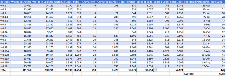 - 24,259 words in Spanish (the largest so far, surpassing the initial release by 148 words). Total: 290,291.
