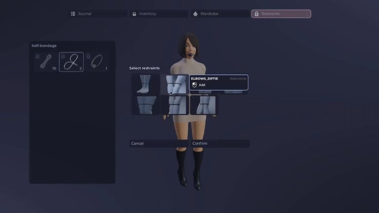 I haven't talked much about self-bondage in the previous devlogs. Self-bondage in the game is there for our own pleasure because let's be honest, you want your sexy girl tied up huh? ;)