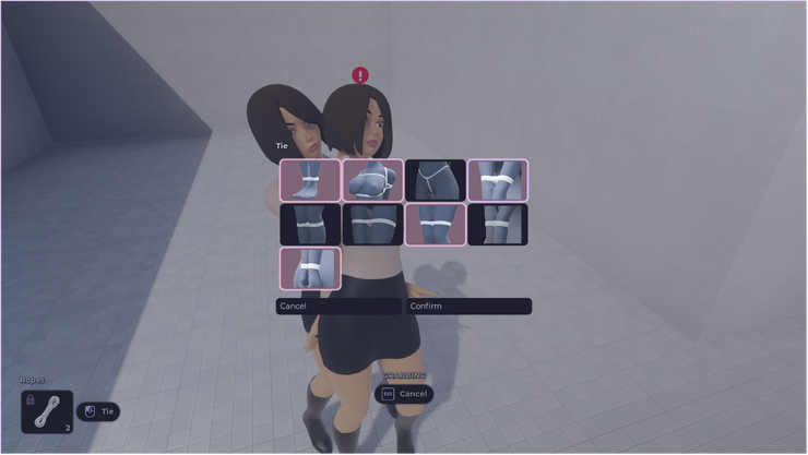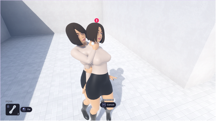 Now for the fun part, you can now restrain other characters! Yay! :D All you need to to is to grab a sexy character from behind you want to restrain and equip any restraint you have in your inventory and start the fun hehe.