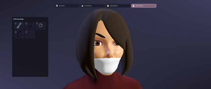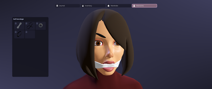 This isn't implemented yet but having more gags and restraints will make the struggle longer and make you desperate enough to look for items or furnitures that can help you to get out of your beautiful restraints, and that would be a damn crime!