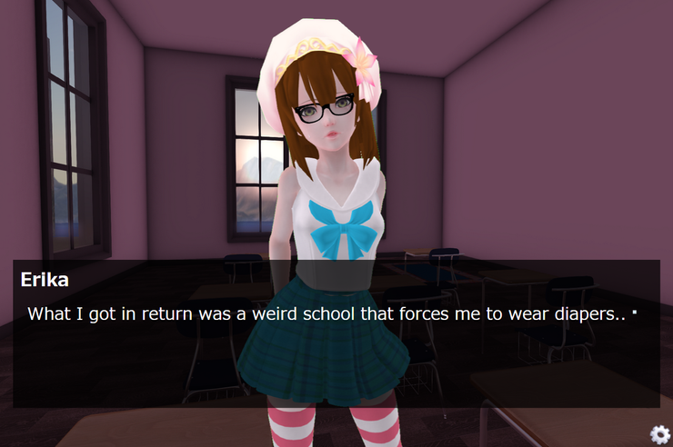 At this stage, we were still trying to expand on character’s kinks or fetishes as well to showcase during the free day content. You see, beyond the diaper focus, each character would have another secret that’d be discovered along the way and blend together with diapers.