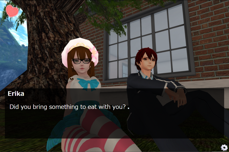 For Erika, in the morning you find her studying in class by herself and join her. By noon, you find her sitting under a tree out front of the school eating lunch. Then by afternoon, you find her in another class and decide to have a trivia study session with her.