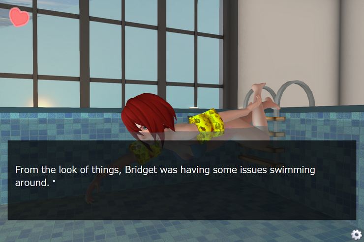 For Bridget, in the morning you find her out back of the academy playing her game device and help her. By noon, you come across her swimming or trying to at least, as you offer to help out. Then by afternoon, you see Joey trailing behind her into the punishment room, as you come to her rescue since she finds him to be a creep.