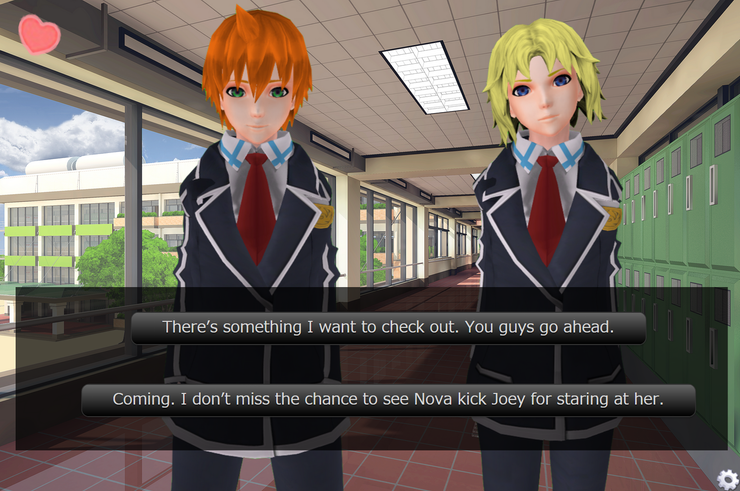 That about sums up the diaper exam, so besides that… The rest of Chapter 2 focused on players being split between tagging along with your buddies to the swimming club to hang out with Nova, or you go alone to check out a club after seeing a flyer in the hallway. I think the main thought during this chapter was to allow players more choices that were focused on characters they’d rather spend more time around as we moved further into the game.