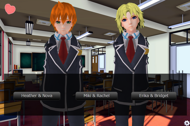 This would also be where the choices come into play, where all choices would boost affection with one given character, while losing affection with the other two within the group in varying degrees. (I really wanted to punish the player I guess.)