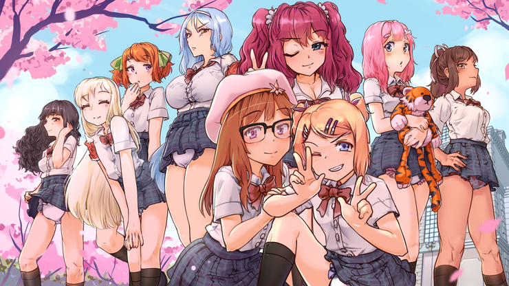My idea here is still a work in progress, but we have the assets for the illustration already created with this plan in mind. That is, a fresh player starting the game will be presented with just the background of this illustration at first. Then, as you play through the game and meet Erika and save your progress. Upon returning to the title screen or starting the game again, you'd now be presented with Erika by herself. Then as you meet Miki, she too would appear, etc.