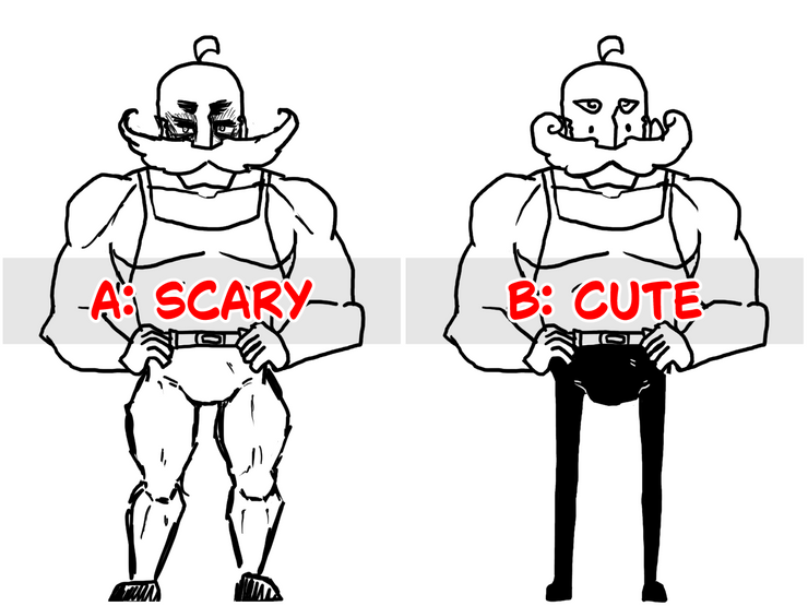 How would it be funniest? A very big man that acts very sweet, or a very serious tiny dude? 😁 More ideas to his personality should be made based on the decisions of his appearance here.