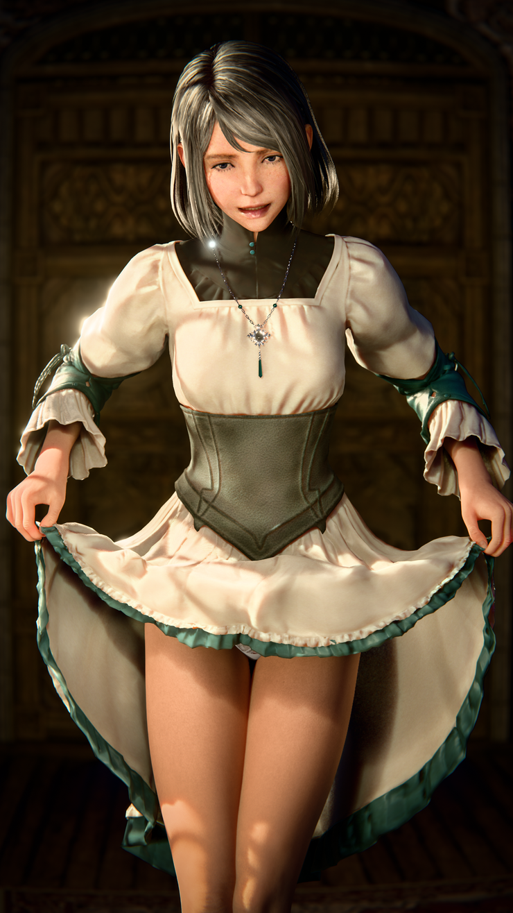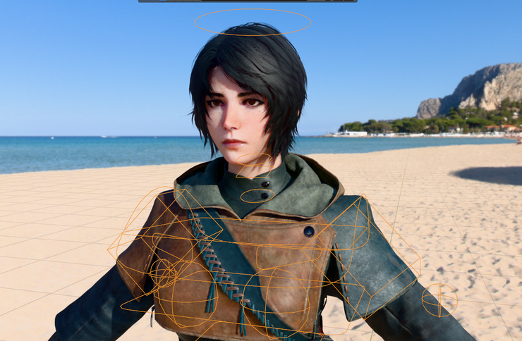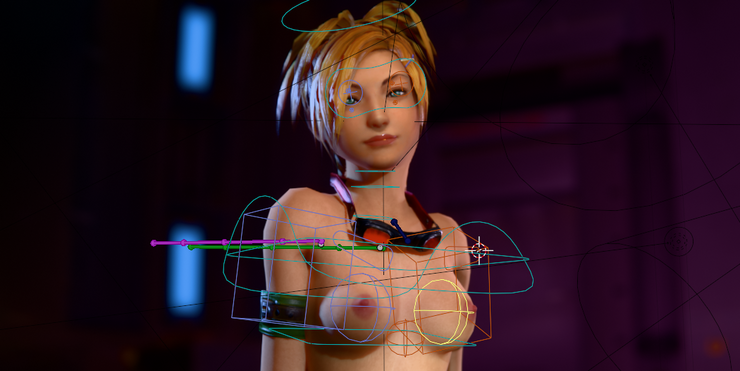 There might be a slight anomaly that I missed, because I did manually rigged her hair and attire.