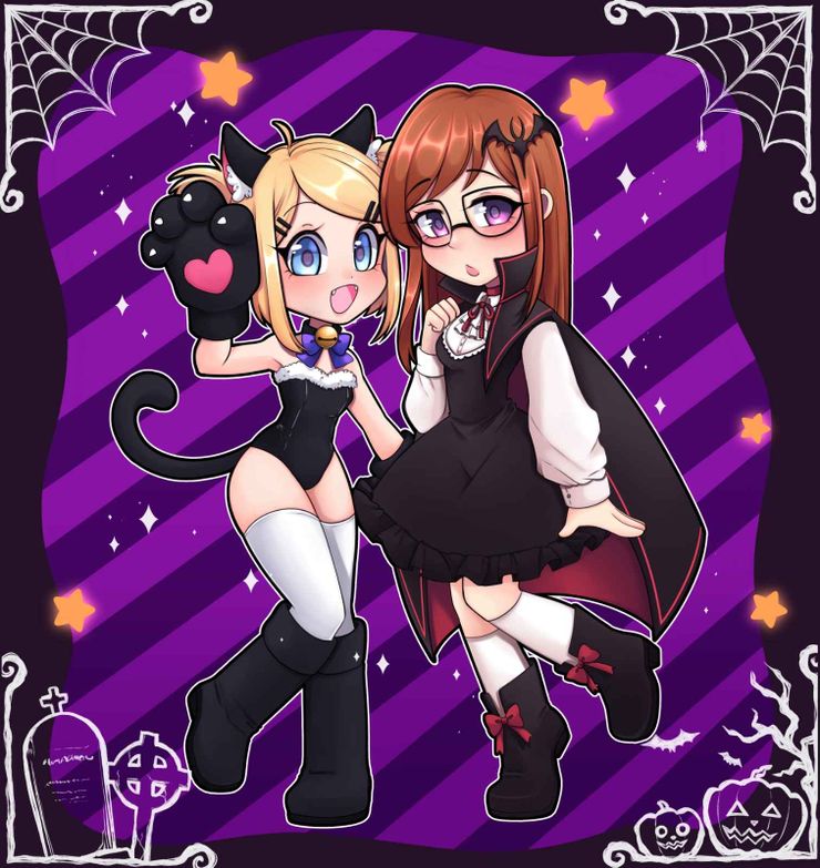 Yet, she had some tricks up her sleeves! In the following days, she'd secretly keep all of this hidden from her friend Erika to surprise her completely. She took on extra tasks in her spare time to earn enough credits to afford two costumes, deciding to purchase a witch outfit for her friend, as she felt Erika would be a perfect cute witch! She purchased a black cat costume for herself, thinking it'd be a perfect match to be the witch's familiar companion for the party!