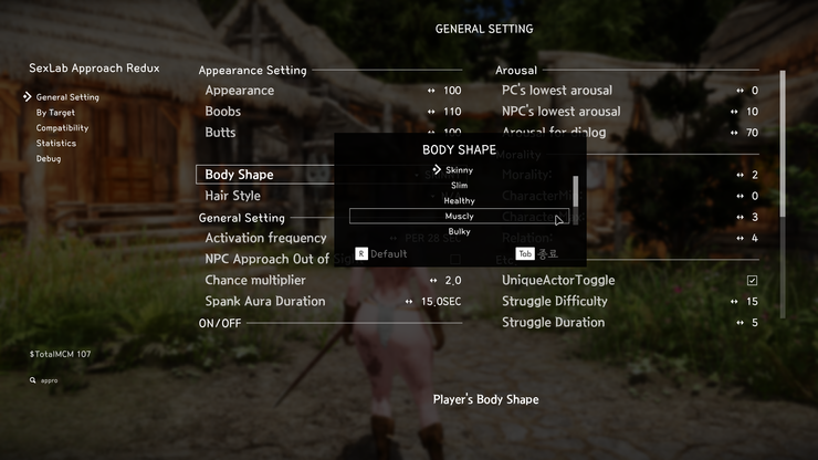 - 이제 MCM에서 "나체 시 접근" 토글을 설정할 수 있습니다. 스위치를 끈다면 NPC들은 단순히 다가와 간단한 코멘트만 던지고 돌아갈 겁니다. 스위치를 킨다면 예전처럼 다가와 말을 걸 겁니다.