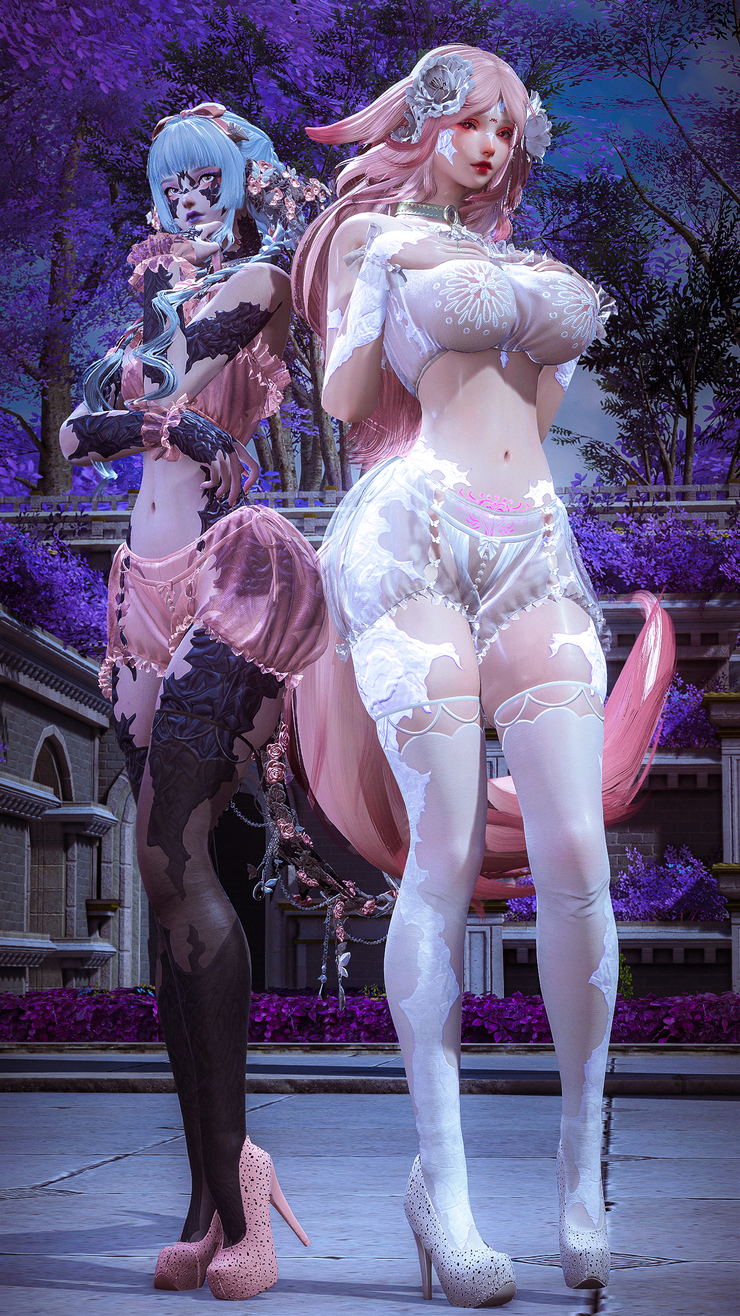 A sweet and sexy lingerie set with lots of options. Includes top, legs, wristbands, rings, and shoes. Custom model and textures, inspired by an artwork by Dishwasher1910.