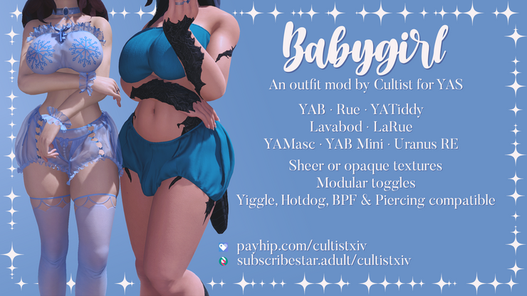 Top is available for YAB S/M/L, YATiddy Omoi/Sugoi Omoi/Sayonara/Tsukareta/Tsukareta+, Lavabod Omoi/Teardrop/Cupcake/Sugar, YAB Mini, YAMasc Flat and Pecs, and Uranus Redux with Rue and Buff variants.