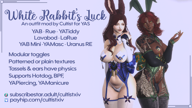 Top is available for YAB S/M/L, YATiddy Omoi/Sugoi Omoi/Sayonara/Tsukareta/Tsukareta+, Lavabod Omoi/Teardrop/Cupcake/Sugar, YAB Mini, YAMasc Flat and Pecs, and Uranus Redux with Rue and Buff variants.