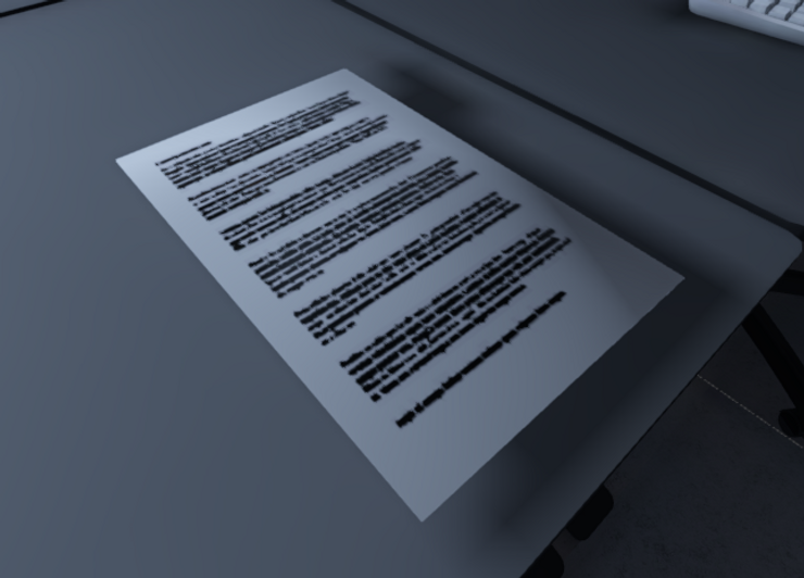 Now, the different documents and notes you can read in the level were kind of difficult to spot and just white planes. So i have made a proper model with a generic enough texture to help identify it as a document at first glance. The texture was surprisingly simple to make.
