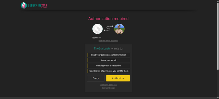 - Click on the Subscribestar link where it says "please login with"