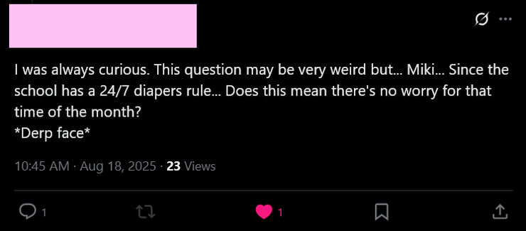 In order to keep things fresh, for this week as highlighted above in the quoted section. Miki has her helper Bindy (Charlotte) who we'll meet in-game very, very, uhh.. very! Soon! She helped Miki answer fan mail this week, but each week the theme changes up a little bit. That doesn't mean the questions have to be set directly around what a given week's theme is, all questions are encouraged no matter how serious, silly, or awkward they may seem!