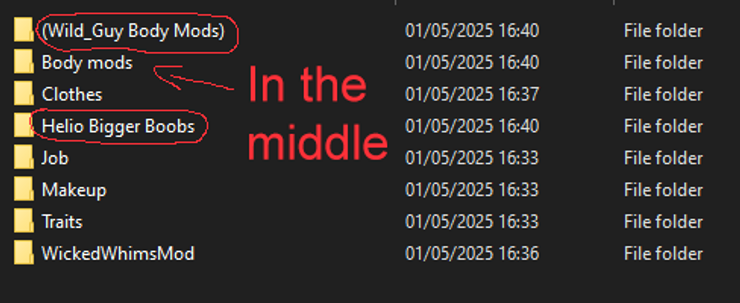 Make sure that in your mod folder, Wild Guy Body Mods are above Body Mods and Body Mods are above Helio Bigger Boobs.