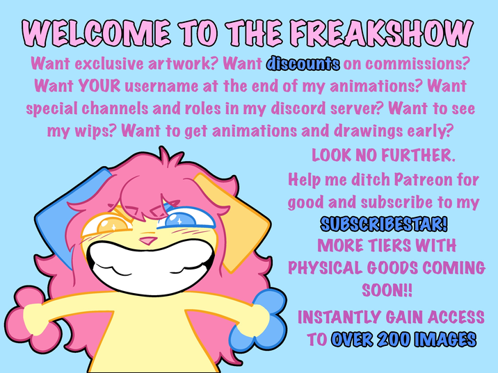 Early access, behind the scenes, work in progresses, a special discord role and channels, 35% off of commissions, and ULTIMATE commission queue priority! Your character can also appear in the background of my drawings and animations. You will also get a special thank you at the end of my full length animations.