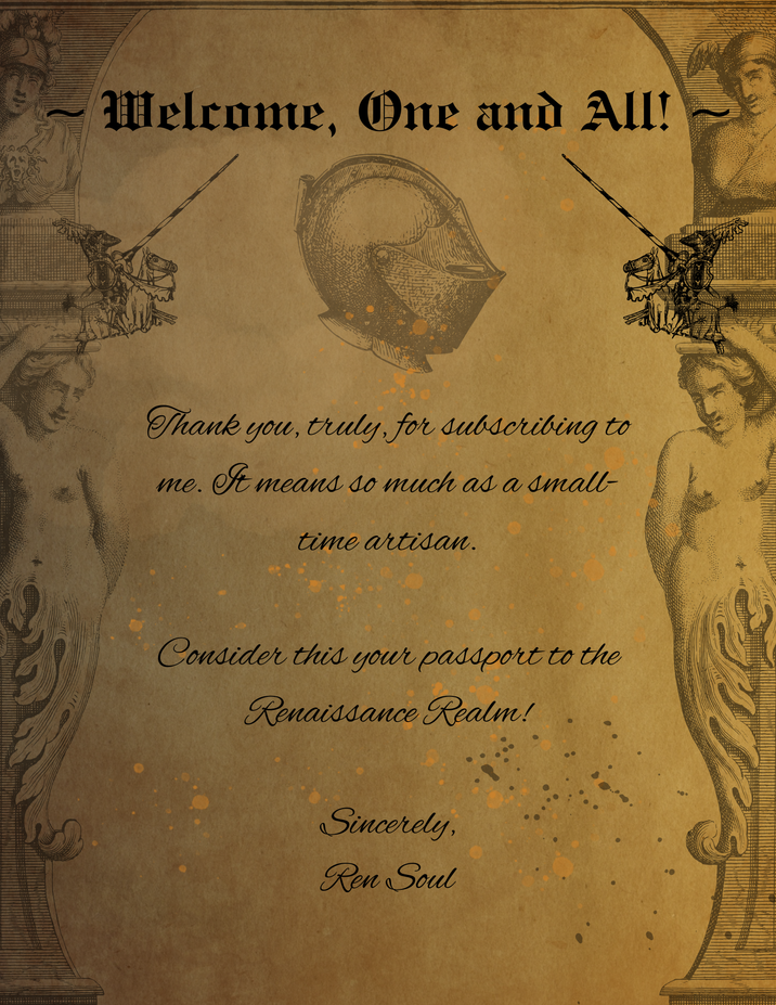 New subscribers. . . welcome to the Renaissance Realm! I extend my most cordial and delighted gre...