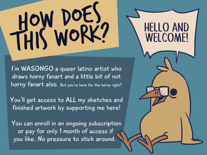 Exclusive access to: - SFW + Grayscale NSFW art (high res/uncensored) - Half of all Picture of the Month variants - Early Bird spots for YCH commissions - Priority spots for regular commissions - Suggestion Box