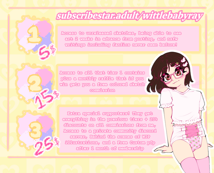 Access to unreleased sketches, being able to see art 2 weeks in advance from posting, and nsfw writings including fanfics never seen before!